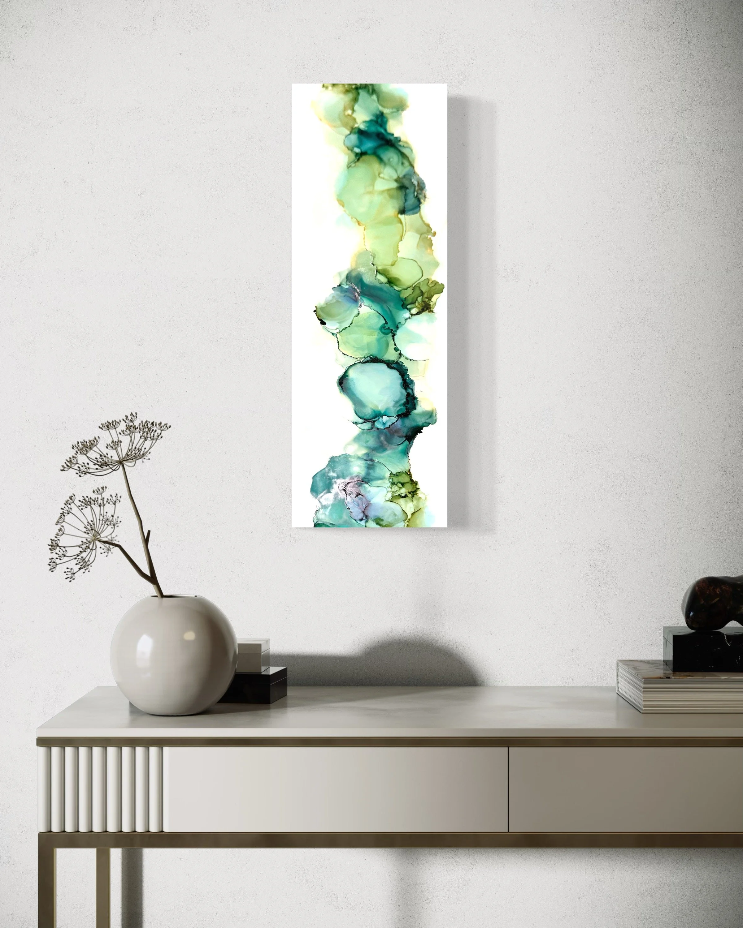 "Serenity's glow," Mixed media on Yupo, 6"x24"