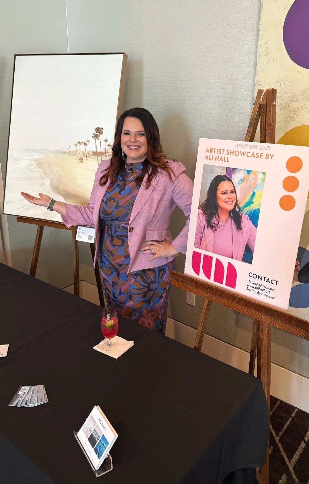 Ali Hall’s work has been exhibited and sold in various group and solo exhibitions regionally and nationally, including the Reno Tahoe International Art Show, the Boston International Fine Art Show with SAB Gallery, and Miami Art Week with Planet Fashion. She has shown extensively throughout the Bay Area and Southern California in galleries, art centers, and curated programs across San Francisco, Bel Air, Los Angeles, Malibu, Palo Alto, Pasadena, and San Jose, Mountain View, Fremont, San Ramon, Walnut Creek, and Livermore. Her art has been featured in public and private collections, bringing an essence of calm and joy to hospitals, restaurants, hotels, wellness centers, private residences, and community events.